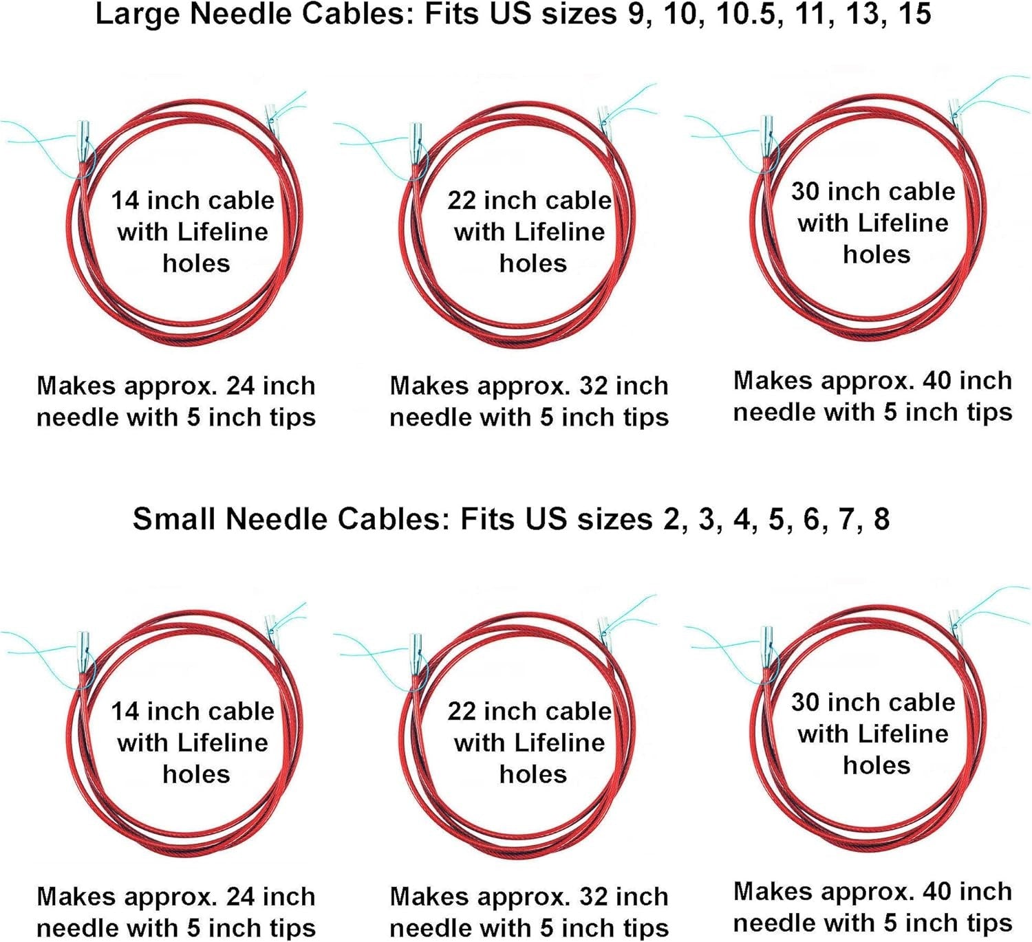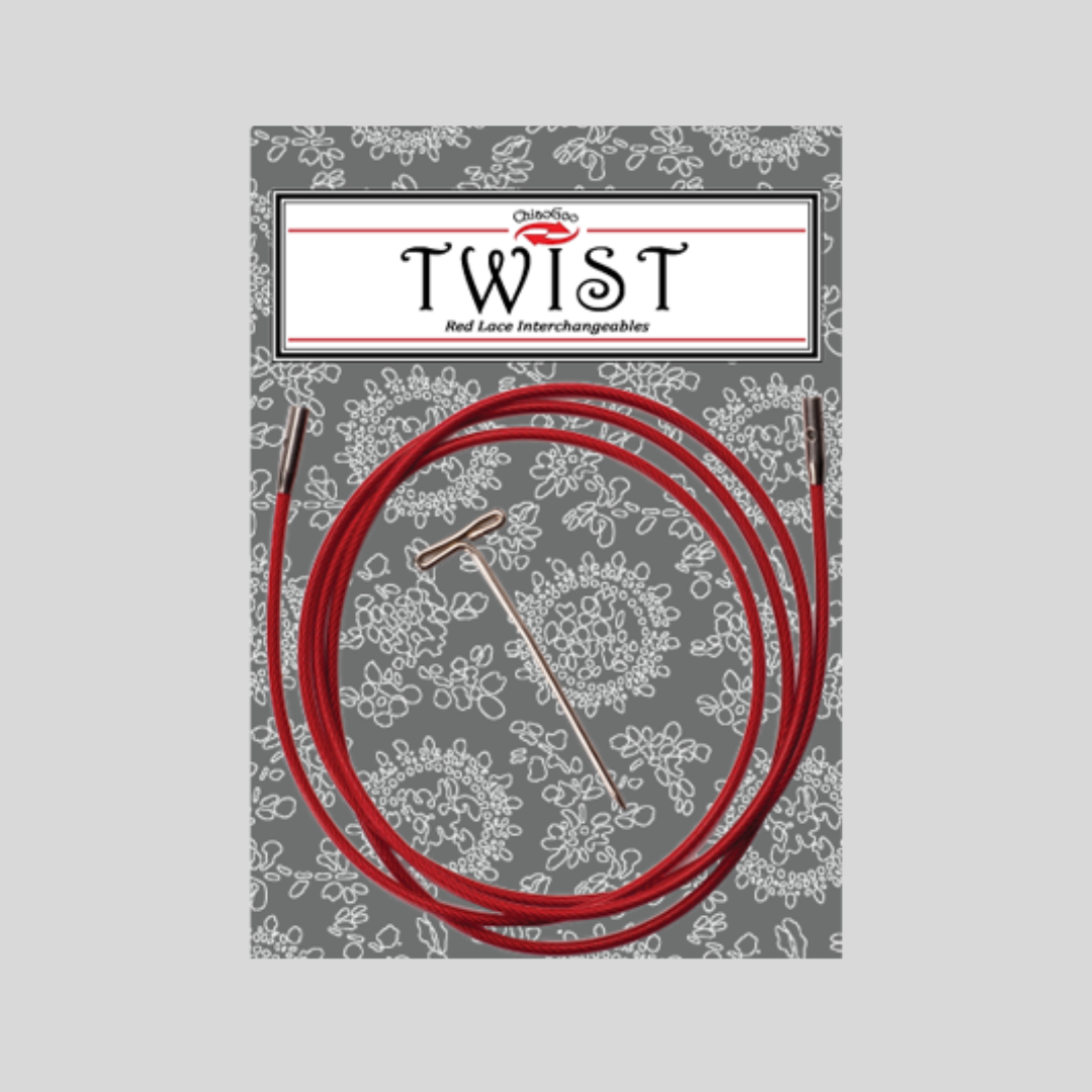ChiaoGoo Twist Red cables are memory-free! They consist of a multi-strand, steel cable coated with red nylon. Lifeline holes can be found at each end of these cables. Insert the T-shaped tightening key into the lifeline hole to assist with securing your tip/cable connection. SPINâ„¢ tips will work with TWISTâ„¢ cables. Available in Small [S], Large [L] and MINI diameters.